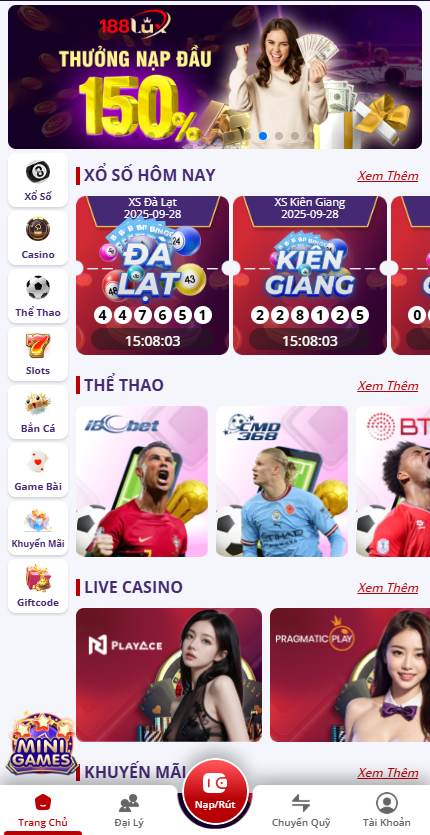 Nhà cái 188lux bảo hiểm cược thua casino, thưởng trải nghiệm game mỗi ngày không giới hạn, hoàn trả tới 3% cũng nhiều game khác hấp dẫn.